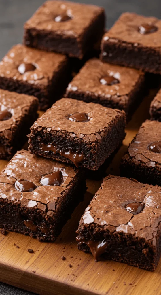 Melt butter and chocolate together. Stir in sugar and eggs. Add a small amount of flour. That keeps crumbs tight and centers gooey. Bake in a shallow pan for a shorter time. Pull them when the edges are set but the center still jiggles. Cool only briefly before slicing. For budget swaps, buy a block of chocolate instead of chips — it melts better. Add a pinch of salt on top to balance the sweetness. DIY: stir in a spoonful of instant espresso for deeper chocolate notes. Serve warm with a scoop of vanilla ice cream for contrast. Make ahead tip: bake most of the tray, then reheat single squares for serving to keep gooey centers.