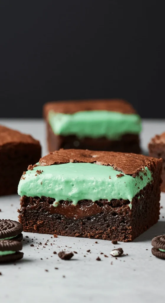 Crush mint cookies lightly and fold into batter or use as a topping. If you lack extract, melt a mint candy into cream for a fast ganache. Bake until edges are firm but center holds a puddle of mint when cut. For a low-cost version, mix peppermint tea or cooled peppermint syrup into softened cream cheese, and drop spoonfuls in the batter. Pair with a sprinkle of cocoa powder or shaved chocolate. Keep portions small — mint flavors can be strong. These balance cooling mint with rich chocolate, and they look great plated with a cookie crumb rim.