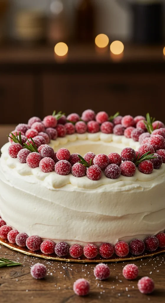 - Decorate with sugared cranberries.