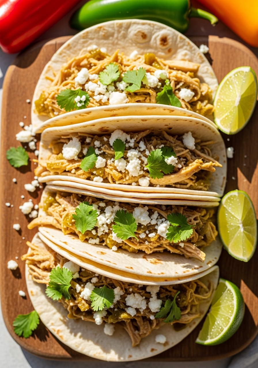 4. Creamy Green Chile Chicken Tacos (Slow Cooker Chicken)
