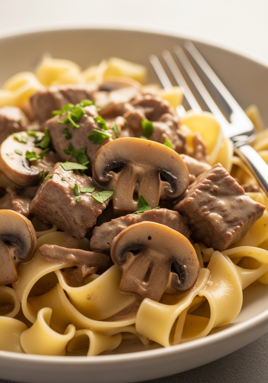 Beef stroganoff becomes weeknight-worthy when slow-cooked—the beef turns fork-tender and the sauce stays silky. Use egg noodles or mashed potatoes for a cozy meal.