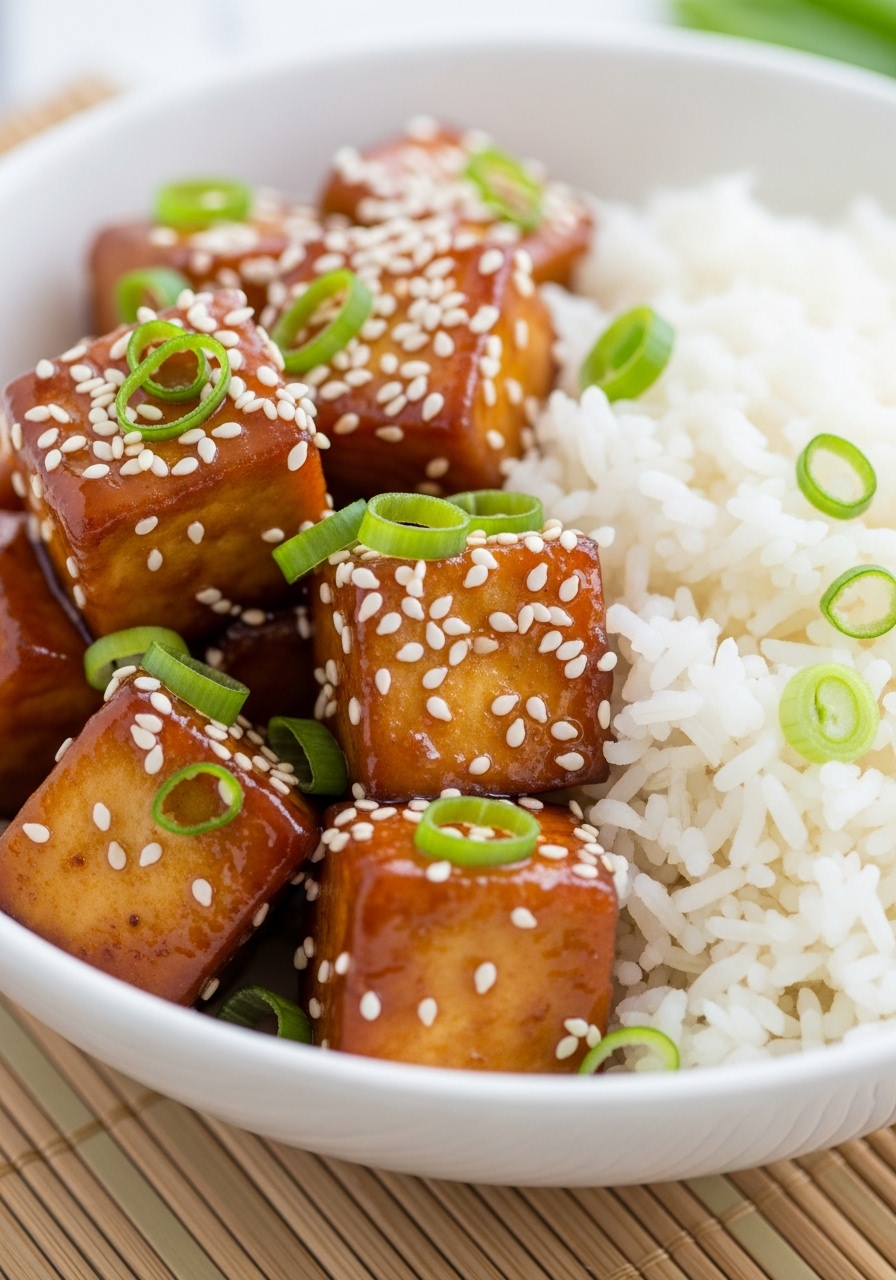 This honey sesame tofu uses firm tofu simmered in a sticky glaze that clings to cubes—great for vegans if honey is swapped for agave. It’s a higher-protein plant-based meal that stores and reheats well.