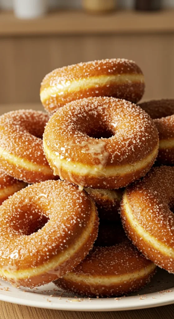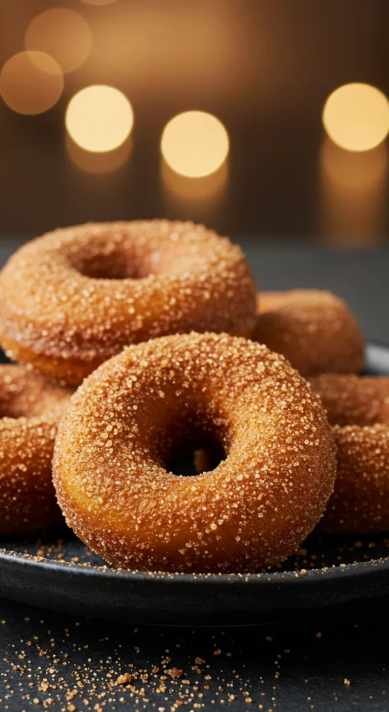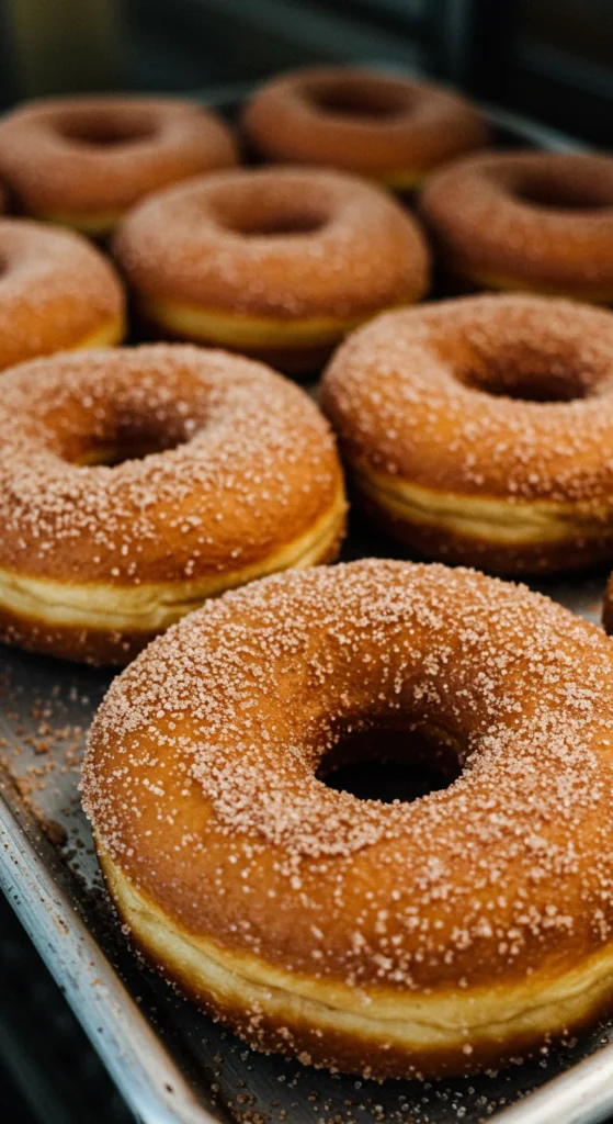 - Bake 12–14 mins. Coat in cinnamon sugar.