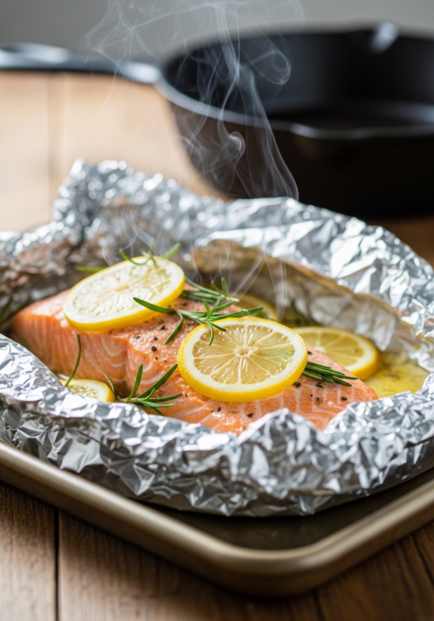 This foil-packet lemon herb version is the weeknight hero—steam traps moisture so the salmon stays tender and flaky. Bright lemon and fresh herbs keep the profile light and healthy. It’s perfect for busy nights and picky eaters who want simple, clean flavors. You’ll notice the garlicky aroma when you peel back the foil.