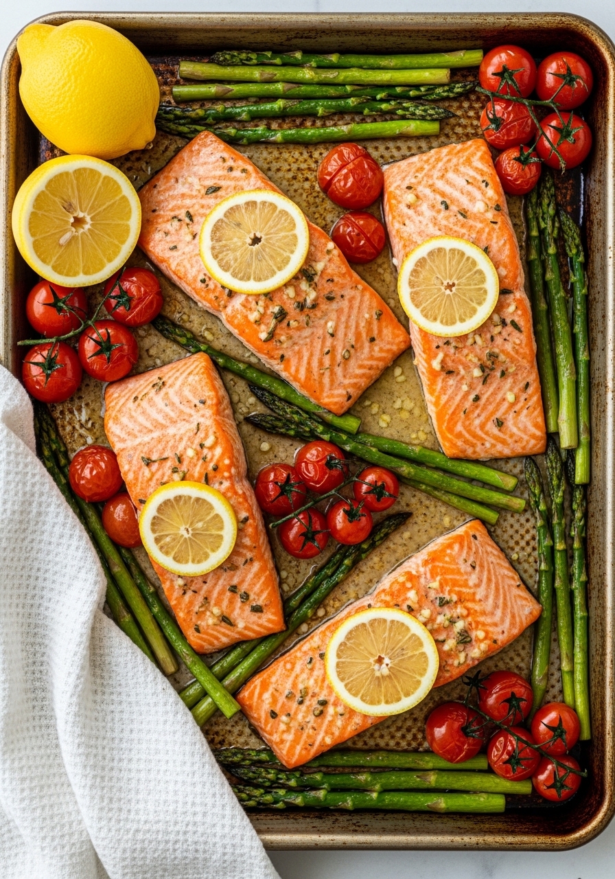 This sheet pan version doubles as a complete dinner—salmon and veggies roast together for minimal cleanup. The lemon-garlic butter creates a glossy, savory finish with a hint of brightness. It’s fast, balanced, and great for feeding four.