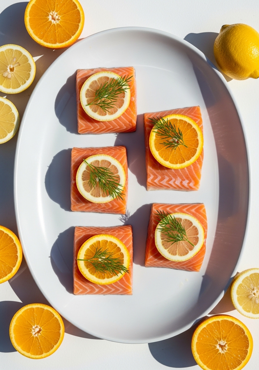 Using a mix of orange and lemon gives layered citrus notes that brighten each bite without overpowering. Dill complements the citrus and fish.