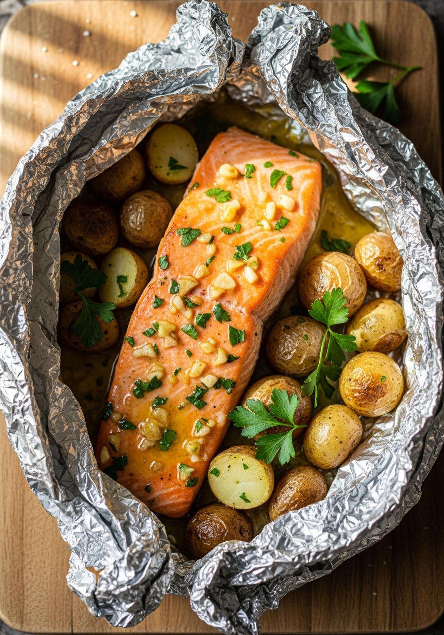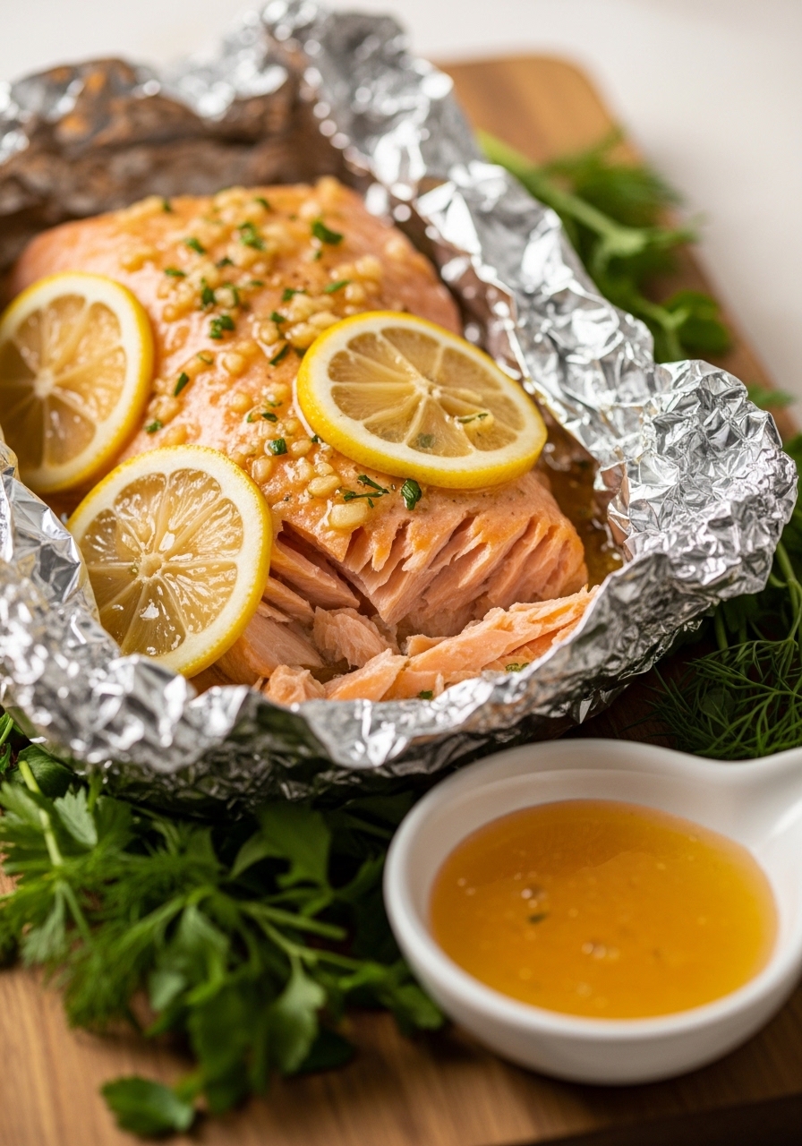 Foil packets trap steam, making salmon impossibly tender and foolproof — perfect when you worry about overcooking. The honey-garlic butter becomes a glossy sauce, and the lemon brightens every bite. Great for busy nights or outdoor grilling.