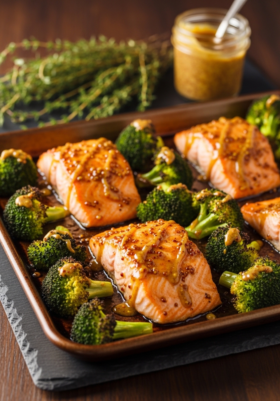 This tangy-sweet honey mustard glaze makes broccoli more kid-friendly and delivers a caramelized finish on the salmon. Prep takes minutes and the tray-bake format keeps cleanup minimal.