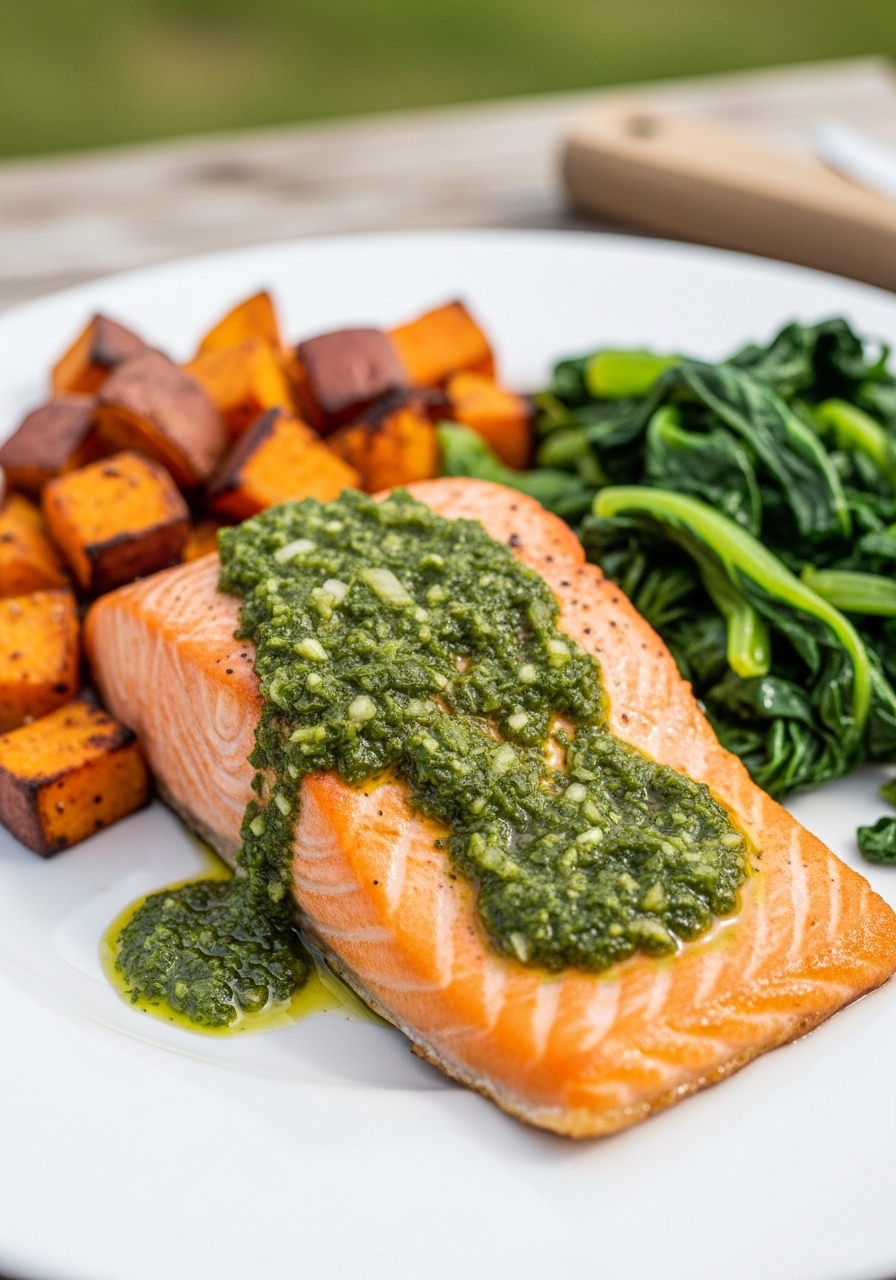 - Grill or sear salmon 3–4 minutes per side until cooked to 122°F (50°C).