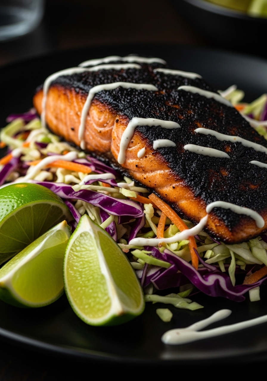 Blackening adds bold spice without breading. A crunchy cabbage slaw keeps things refreshing and low-carb.