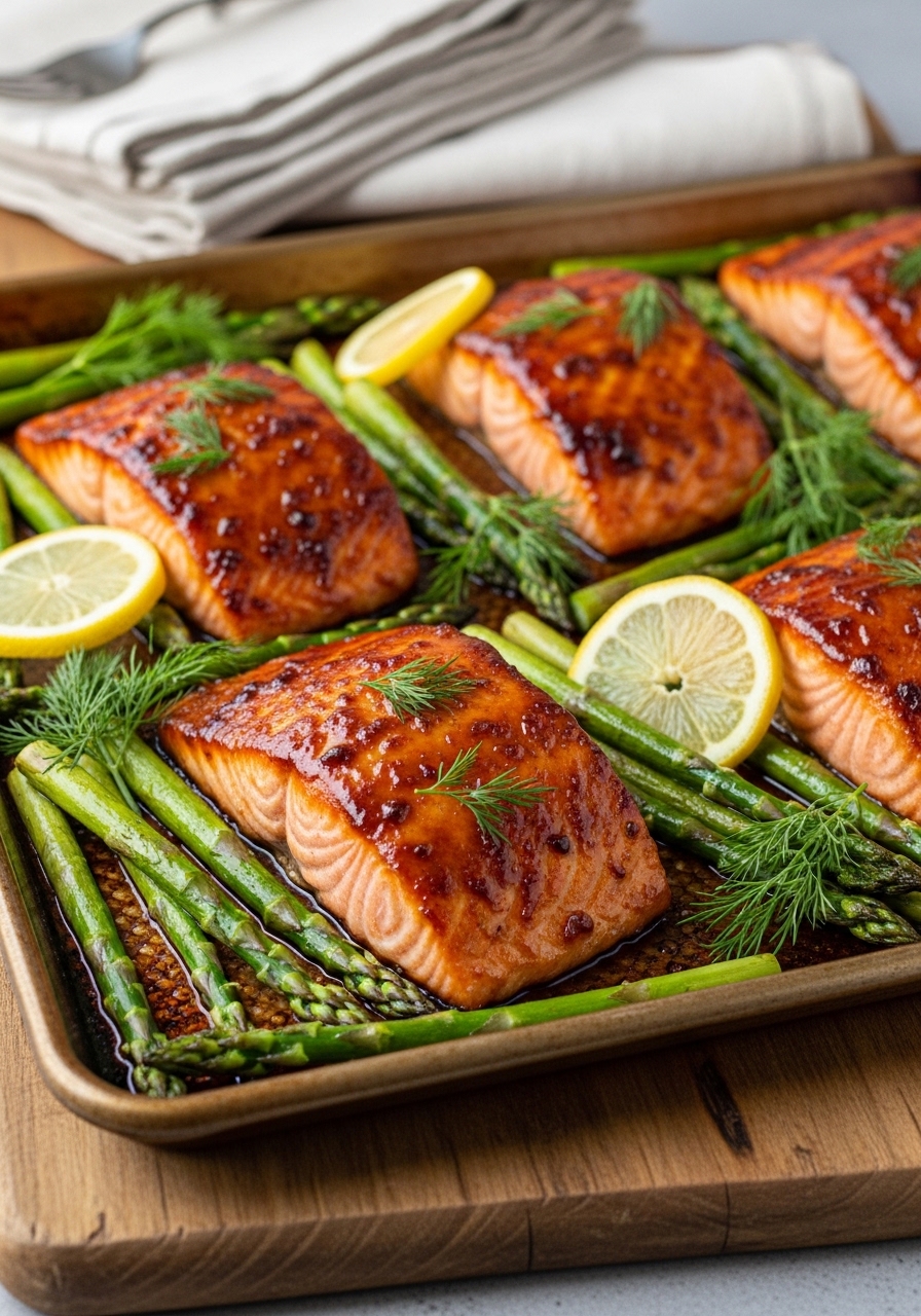 One sheet-pan does it all: flaky salmon, roasted asparagus, and a lemon-herb glaze that caramelizes at the edges. Minimal hands-on time means this fits perfectly into a busy schedule. I roast on a lined baking sheet for easy cleanup.