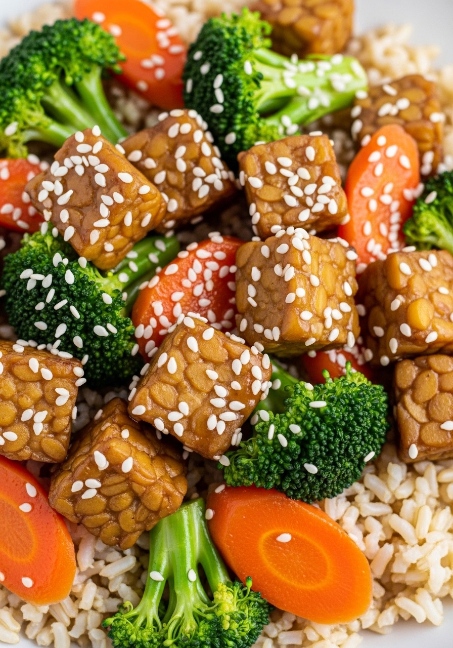 22. Tempeh Stir-Fry with Ginger-Sesame Glaze (Vegan)
