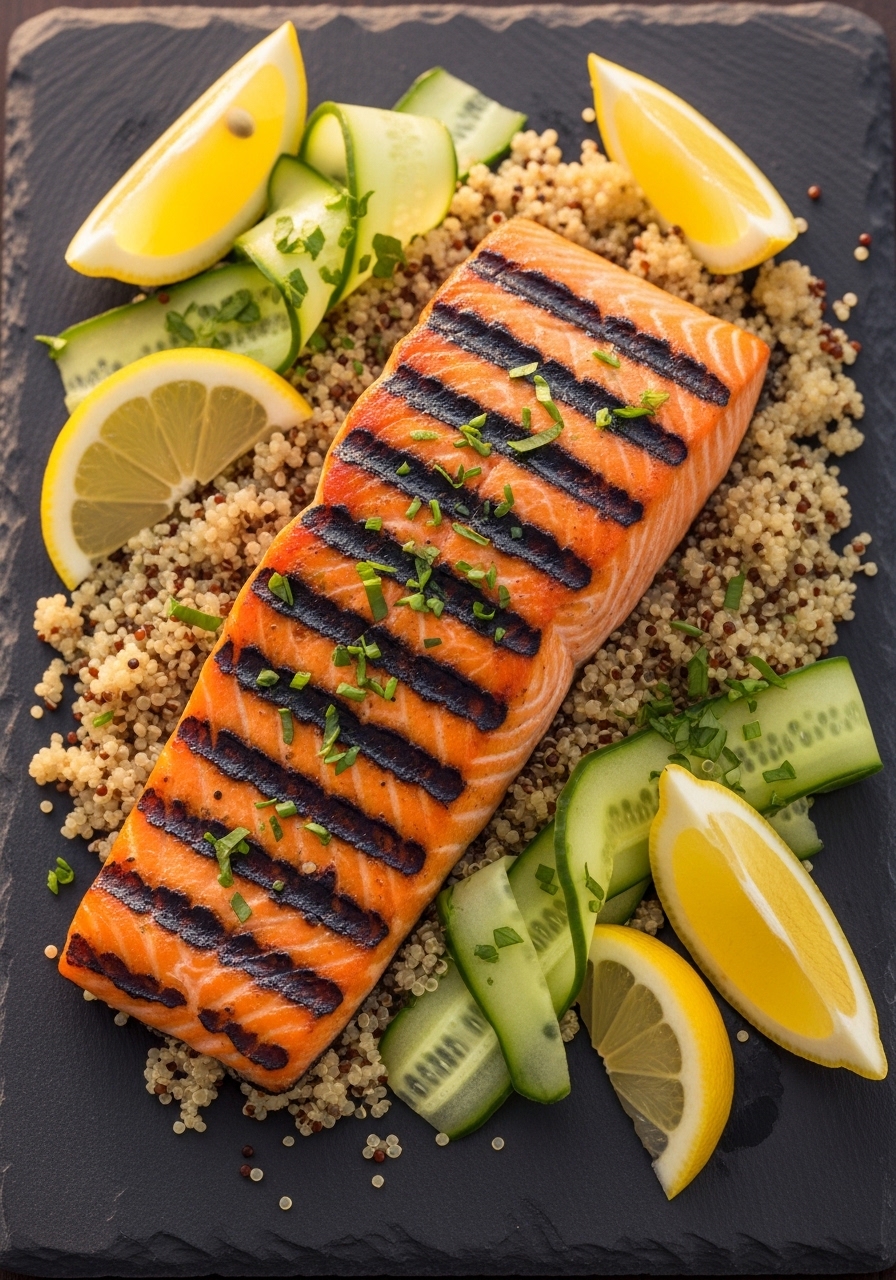 - Serve salmon over quinoa salad.