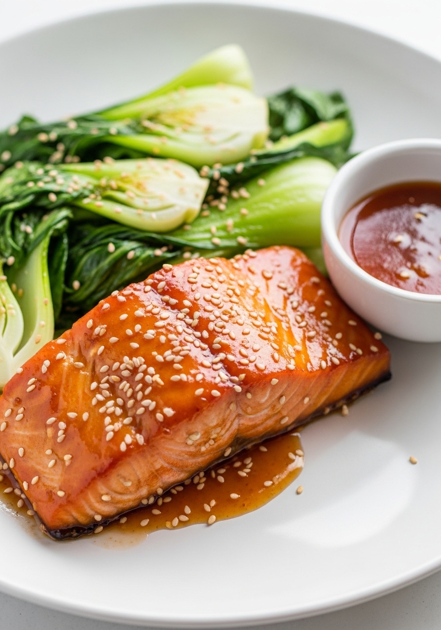 - Roast salmon 10–12 minutes at 425°F, brushing with sauce.