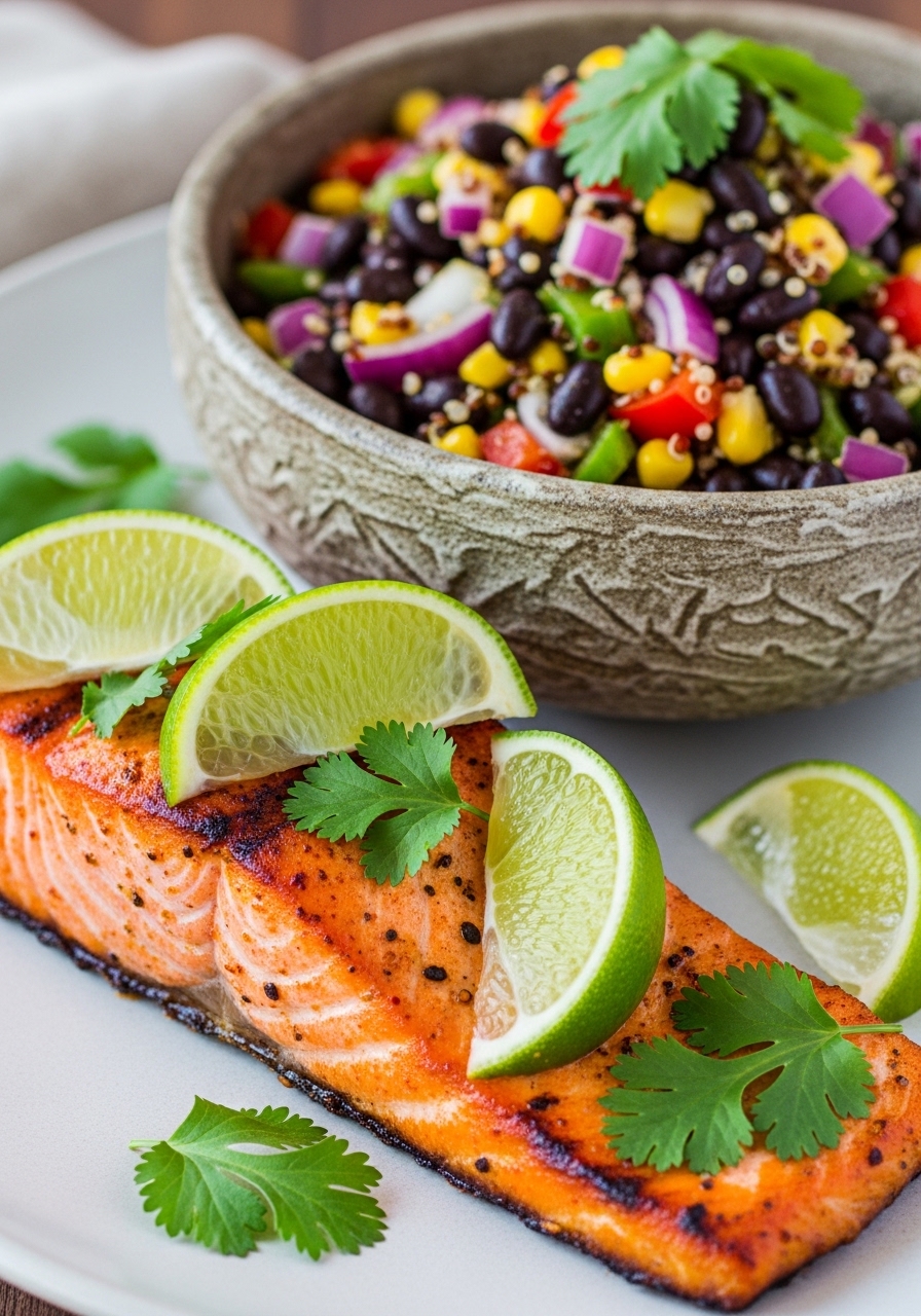 20. Chili-Lime Salmon with Black Bean Quinoa