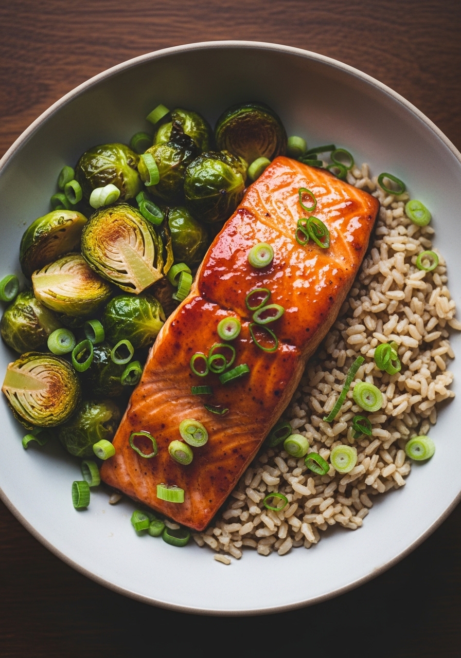 25. Maple-Sriracha Salmon Bowls with Roasted Brussels Sprouts