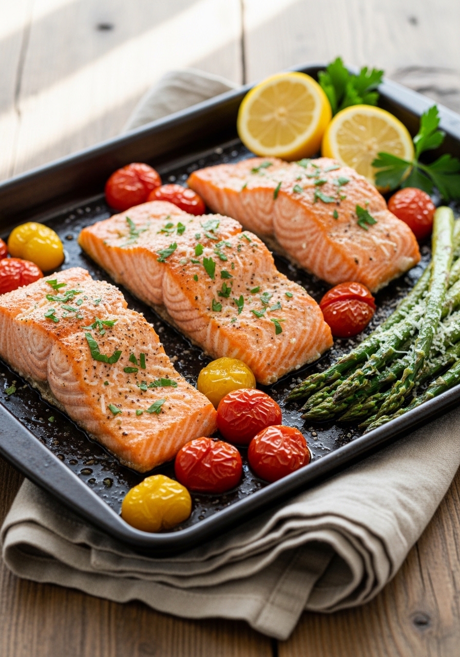 1. Lemon-Garlic Salmon Tray Bake (easy salmon recipe for weight loss)