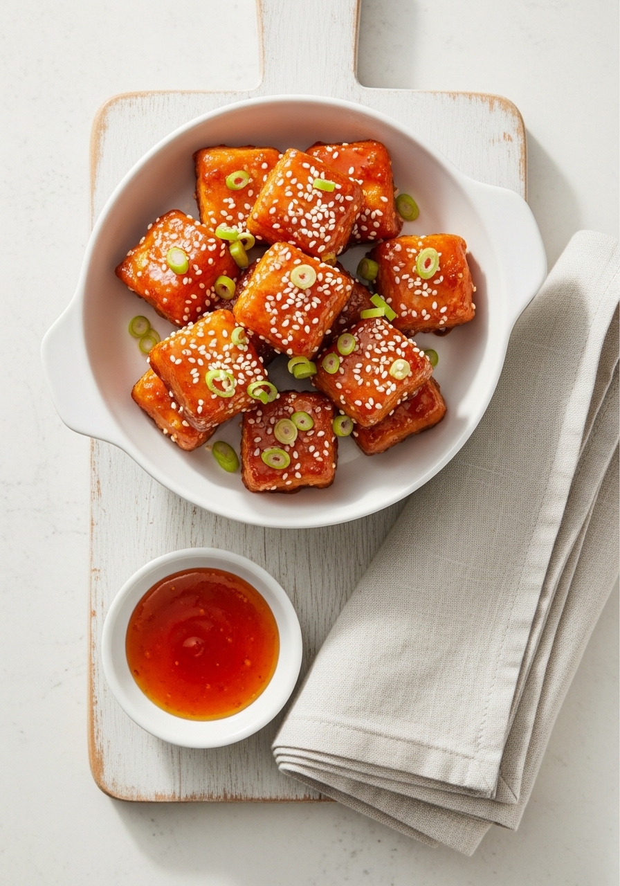 Bite-sized salmon is perfect for salads, grain bowls, or snackable protein. The air fryer gives quick, tender bites with a sticky hot-honey glaze—sweet, spicy, and slightly caramelized. These are great for macro-friendly lunches or weekend batch-cooking. Cook them in an air fryer basket for the best crisp.