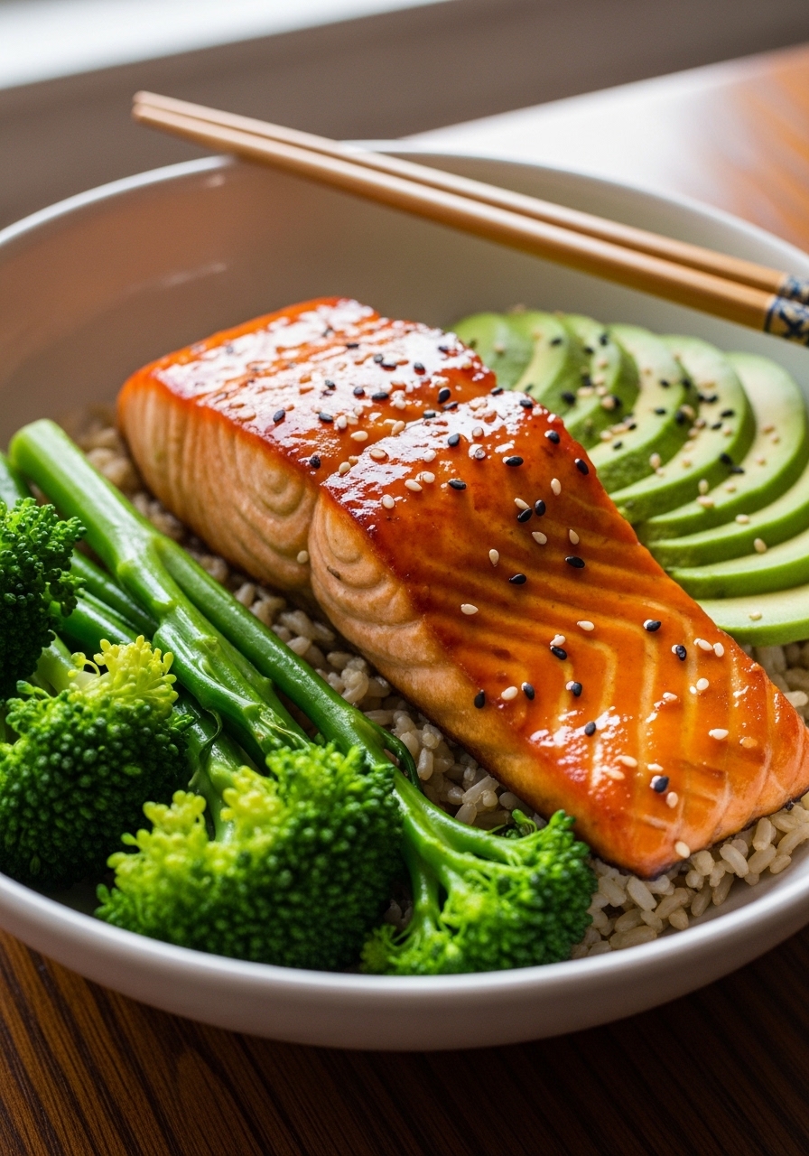 A saucy teriyaki glaze makes salmon feel indulgent while staying lean. These bowls are built for meal prep—salmon stays flavorful and pairs with slow-release brown rice and veggies for balanced fullness. Use a non-stick pan or a cast iron skillet for a caramelized finish.