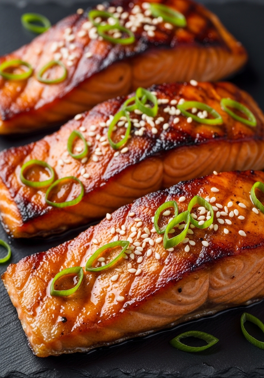 - Brush salmon with glaze and broil or bake at 425°F for 8–10 minutes until glossy and flaky.