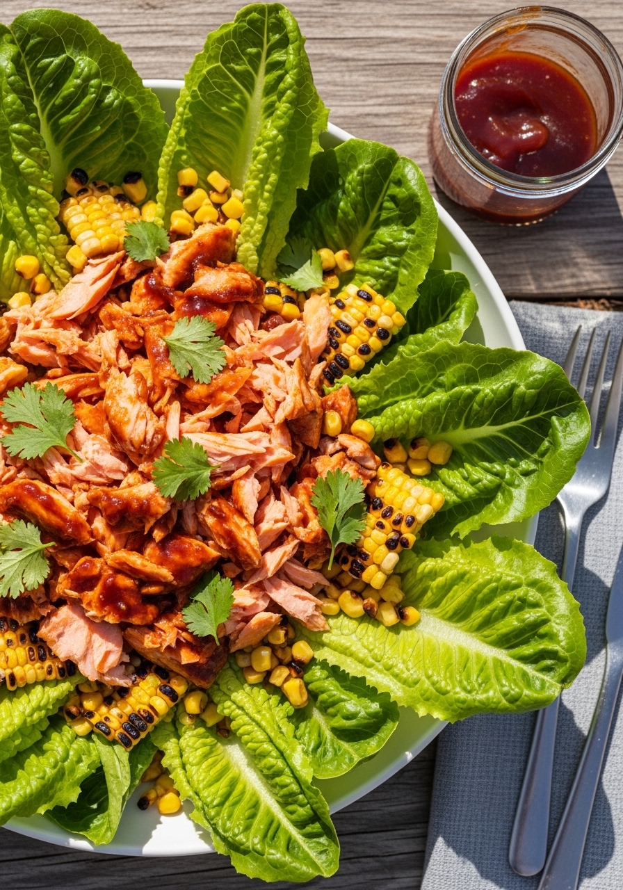 BBQ sauce gives confident flavor without heavy dressings—keep sauce low-sugar or use a light version. Charred corn adds summer sweetness and texture for a filling salad.