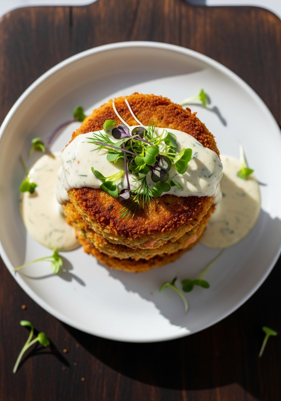 - Heat oil in skillet and fry patties 3–4 minutes per side until golden.