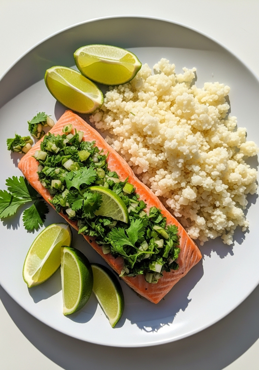 20. Cilantro-Lime Salmon with Cauliflower Rice (low-carb option)