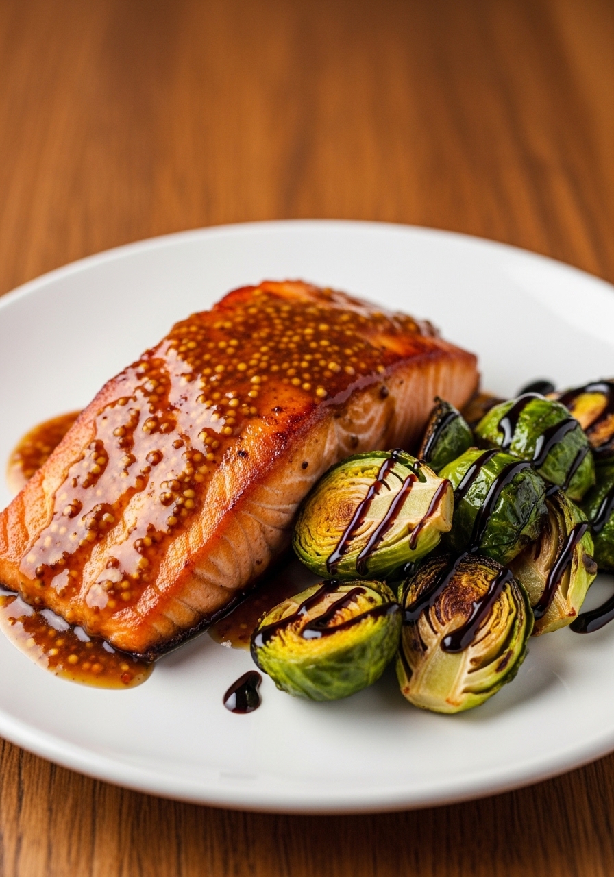 A touch of maple and mustard creates a sweet-savory glaze that satisfies cravings while staying portion-controlled. Roasted Brussels sprouts add crunch and fiber.