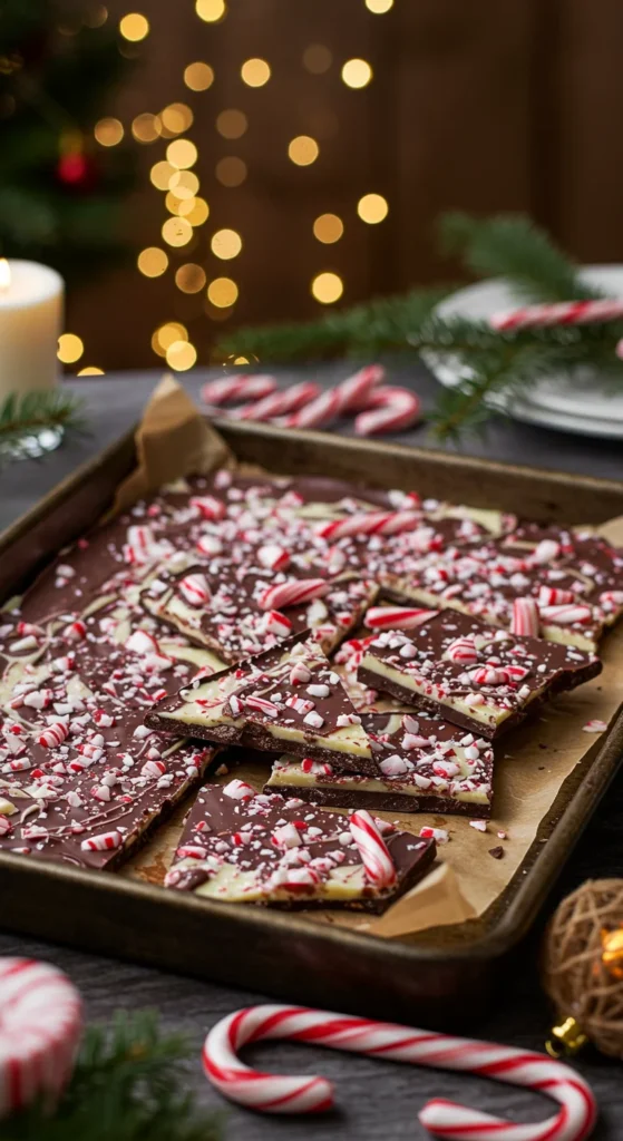 Peppermint bark is one of the easiest holiday treats. Melt dark chocolate, spread it thin on a baking sheet, chill, then top with melted white chocolate and crushed candy canes. Break into pieces once firm.