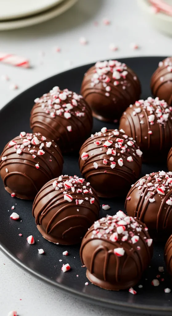 Peppermint truffles are bite-sized treats that feel fancy. Mix crushed cookies with cream cheese and peppermint extract, roll into balls, dip in chocolate, and sprinkle with peppermint.