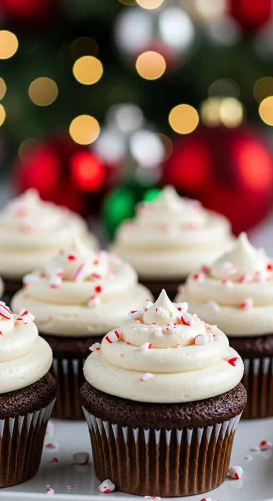 Bake chocolate cupcakes and top with peppermint frosting. Add crushed peppermint or mini candy canes for decoration.