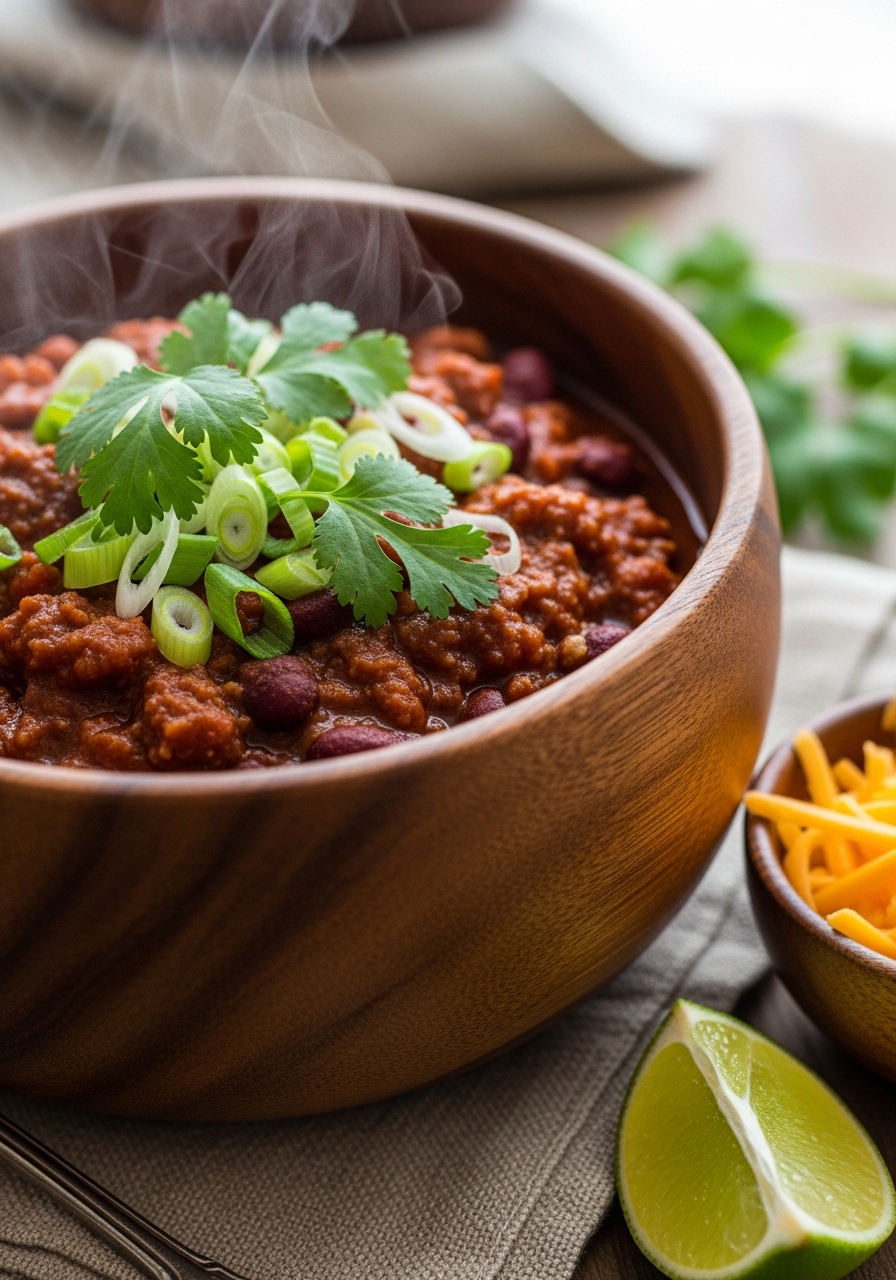 This slow-cooker chili is thick, chunky, and layered with warm spices (try a pinch of cinnamon or unsweetened cocoa) for depth without extra heat. It’s a comfort-food winner that tastes like it simmered all day—even if you prep in 10 minutes. Great for meal prep, families, and anyone craving a cozy bowl with bold aroma and hearty texture. Use your slow cooker for hands-off simmering.