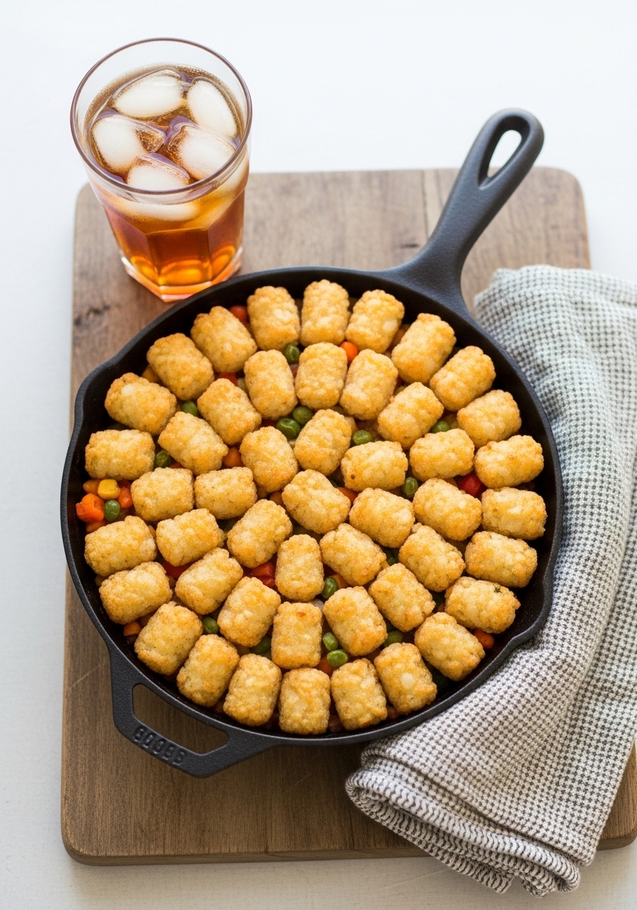 This skillet casserole upgrades the nostalgic tater tot casserole by sneaking in extra veggies and using lean ground beef. It’s a one-pan family dinner with crispy tater tots and a creamy, savory filling that’s kid-approved and fridge-friendly. The contrast of crunchy tots and tender beef is irresistible—perfect for weeknights when you want low fuss and big comfort. I use my 10-inch cast iron skillet to get crisp edges.