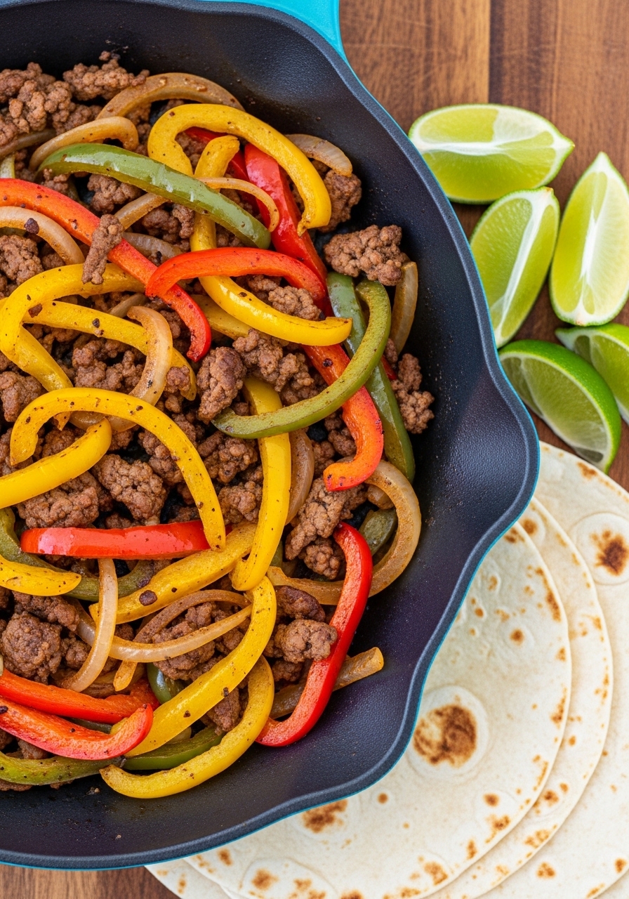 Fajita flavors in one pan—this is fast, bright, and flexible. Serve in tortillas, over rice, or on greens for a weeknight crowd-pleaser. A large skillet with high sides holds everything nicely.