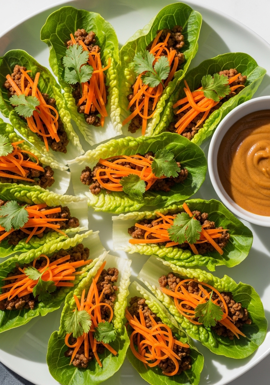 These lettuce wraps are crisp, bright, and topped with a silky peanut-ginger sauce for nutty umami. They make for a light dinner or an impressive appetizer. A small mixing bowl set is handy for sauce prep.
