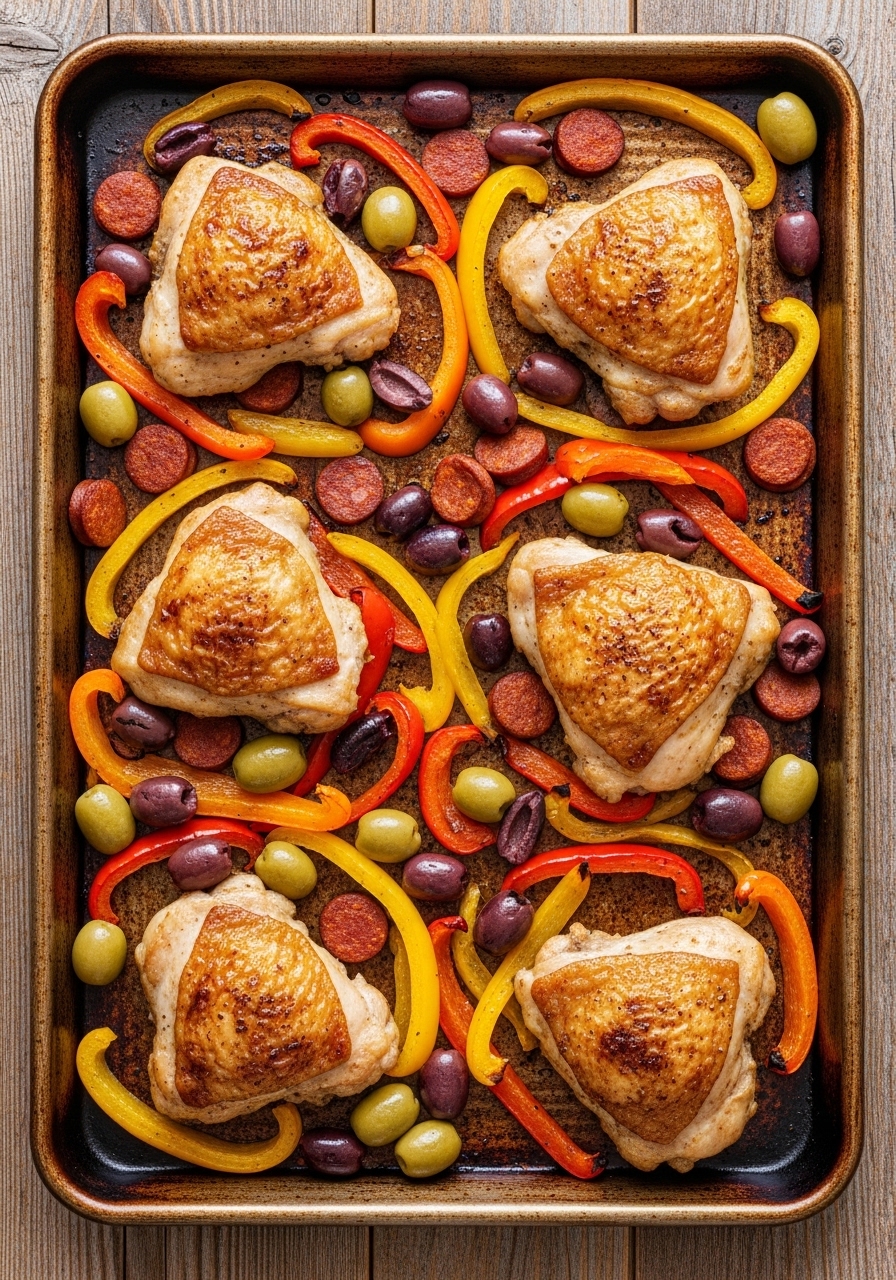 - Heat a skillet over medium-high heat; sear thighs skin-side down 5–6 minutes until golden.