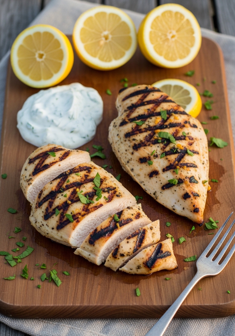 Bright lemon and toasted garlic make this grilled chicken sing. The yogurt-herb sauce adds cooling tang and extra protein, while quick brining keeps the meat juicy. Perfect for weeknight grilling or summer salads—anyone who likes zesty, light-but-filling meals will love it. The smell of charred lemon and fresh herbs is irresistible.