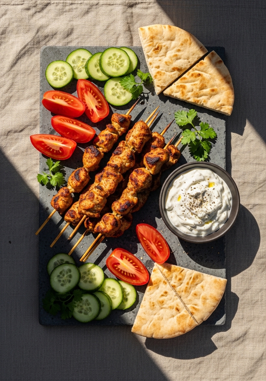 Serve with warm pita, sliced red onion, and tzatziki. Store leftover skewers in airtight containers up to 3 days. For make-ahead, marinate the night before and grill when ready.