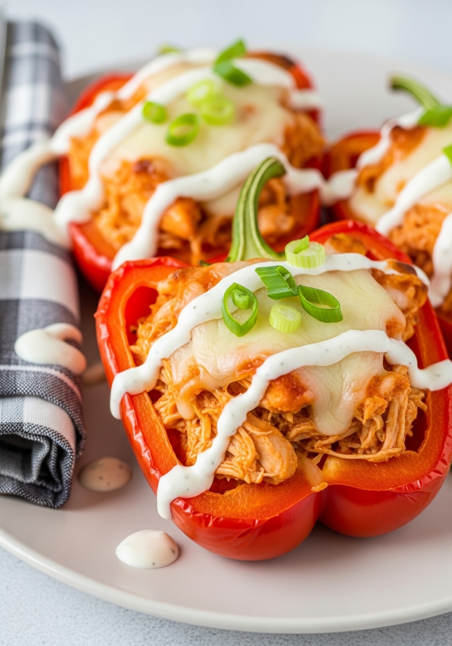 These stuffed peppers combine tangy buffalo chicken with melty cheese for a handheld low-carb dinner. They’re colorful, satisfying, and a great way to use leftover chicken.