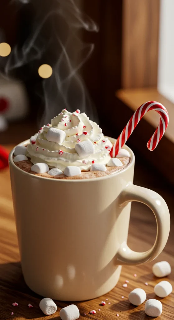 - Pour into mugs, top with whipped cream and marshmallows.