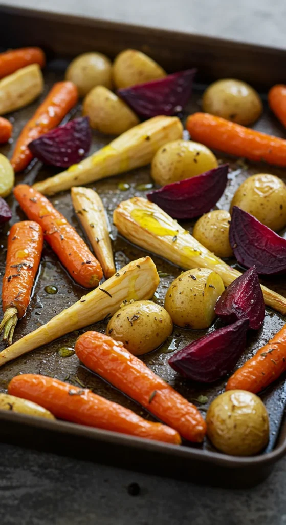 Roasted root vegetables bring color and depth to the table. Toss carrots, parsnips, beets, and potatoes with olive oil and herbs, then roast until caramelized.