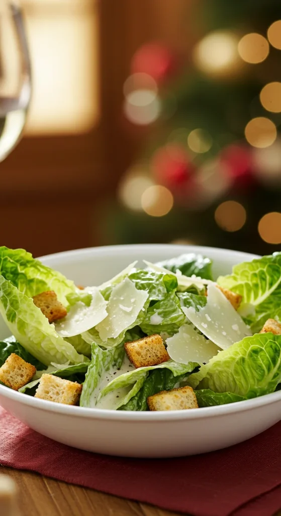 For something fresh, add a Caesar salad to balance the heavier dishes. Toss romaine lettuce with dressing, parmesan, and croutons.