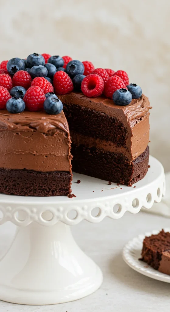 - Chocolate ganache → made with dark chocolate and coconut cream.