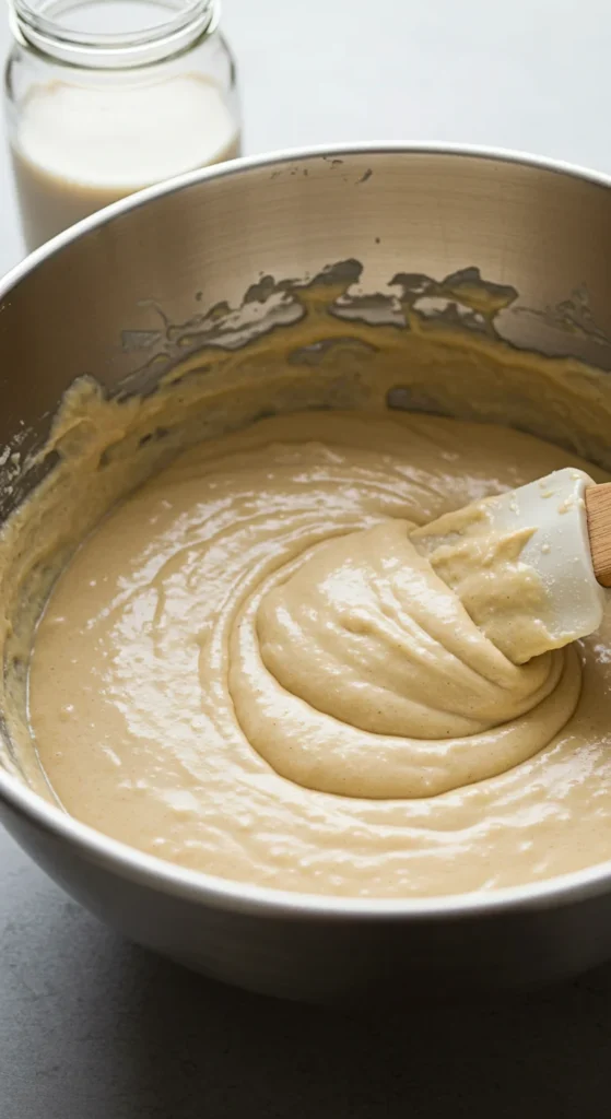 Combine wet and dry ingredients, stirring until just smooth. Avoid overmixing—this keeps your cake tender.