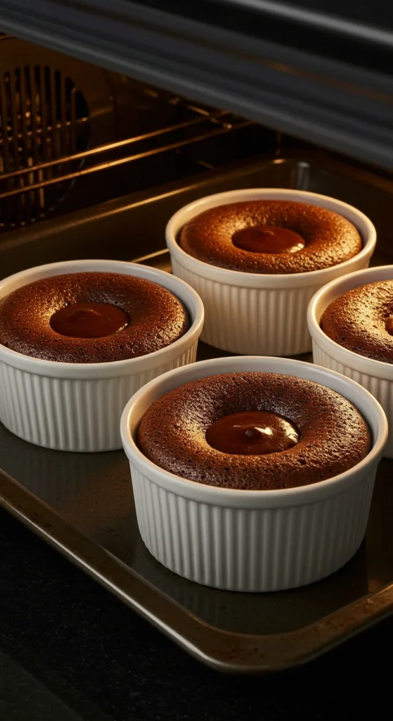 Grease 4 ramekins (6-ounce size) generously with butter or nonstick spray. Dust lightly with cocoa powder to prevent sticking and give a professional finish. Place them on a baking sheet for easy handling.
