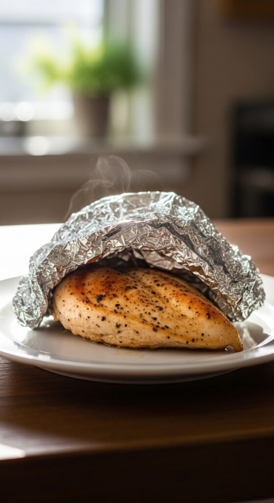 Remove the chicken from heat once it hits 160–162°F. It will continue cooking as it rests and reach 165°F naturally.