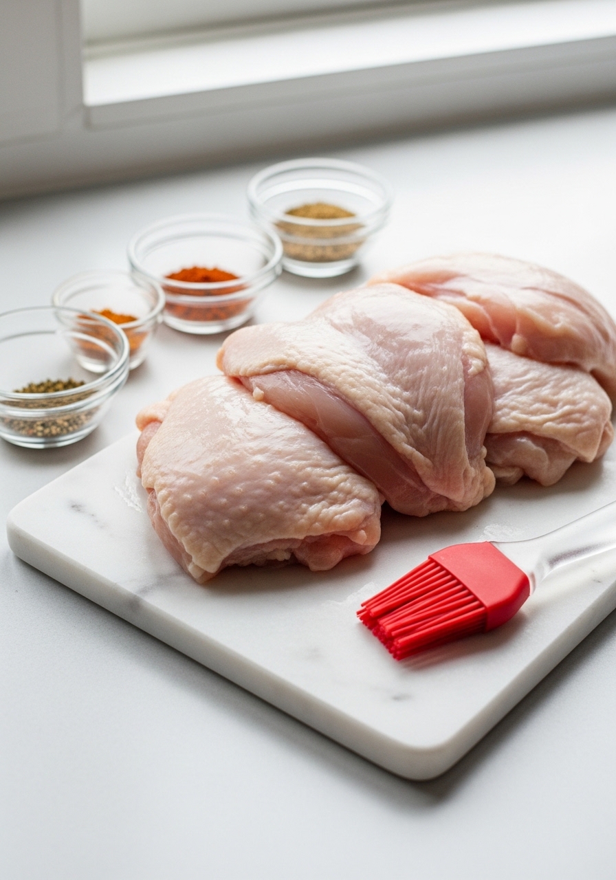 Start by choosing similar-sized pieces so they cook evenly. Use a digital kitchen scale (https://www.amazon.com/s?k=digital+kitchen+scale&tag=recipecamp-20) to match portions—about 6–8 ounces per breast or 3–4 ounces per thigh is ideal.