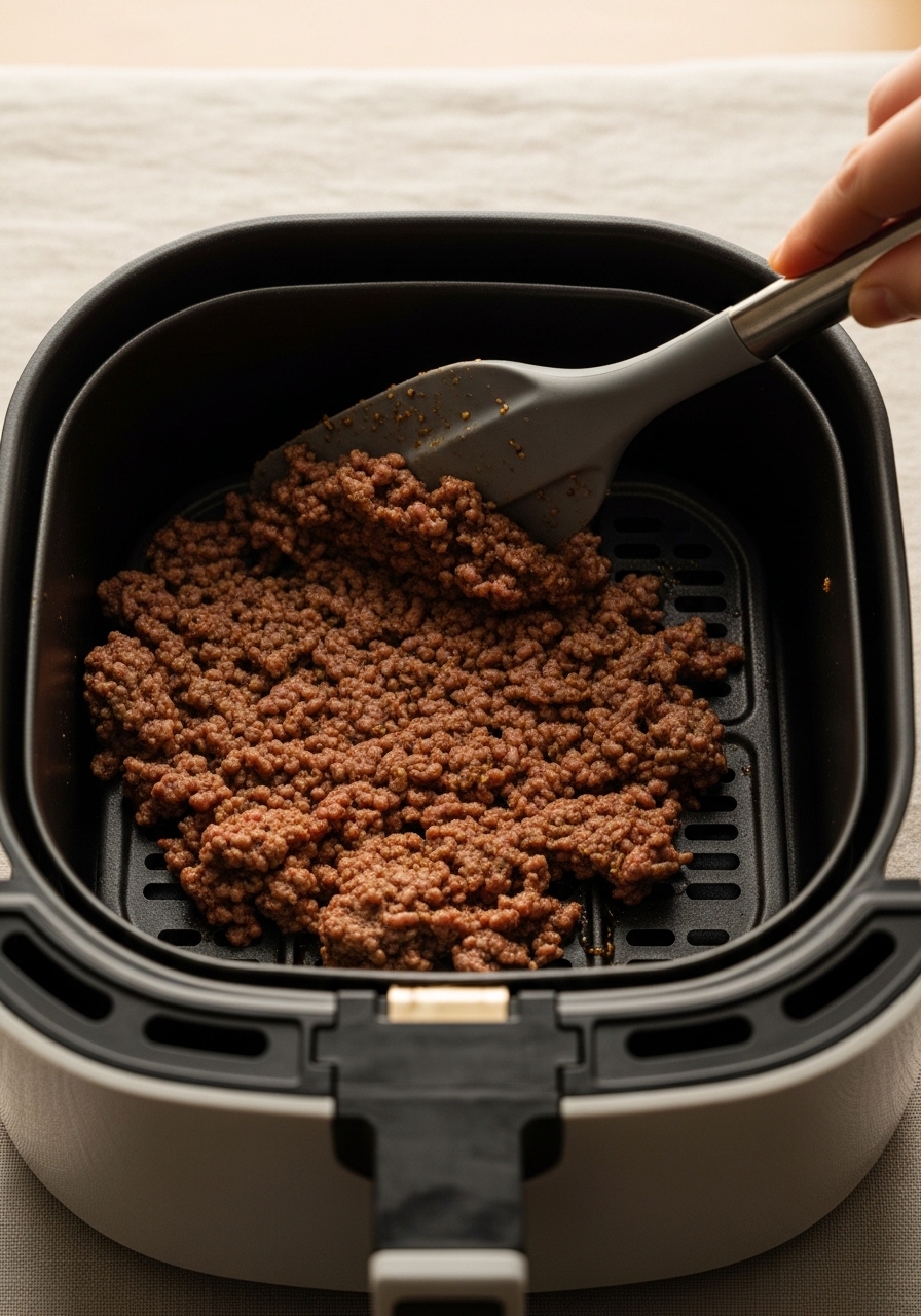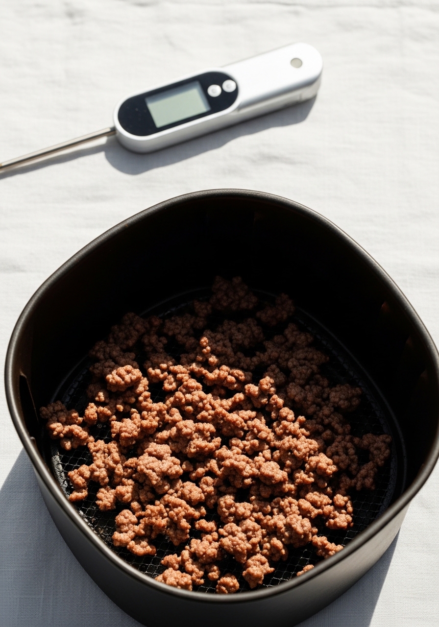 Common mistake: crowding the basket. That causes steaming instead of browning. Give the meat room and stir once halfway.