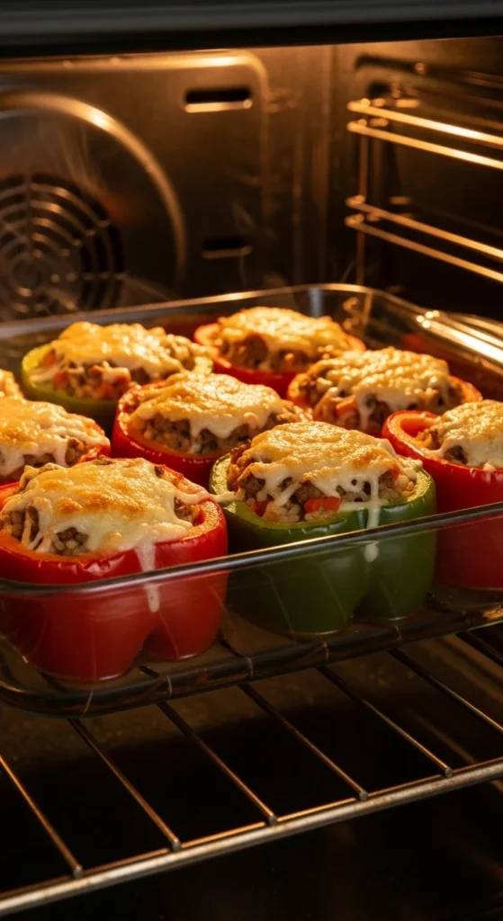 This is where the peppers turn tender and the filling becomes warm and comforting.