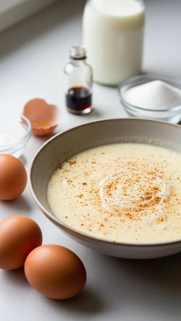 The custard mixture should coat the bread, not drown it. Too much milk equals limp French toast.